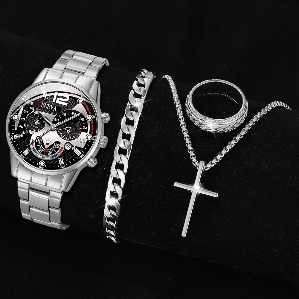 Modern Gentleman 4Pcs Set – Watch & Jewelry Gift Box for Him